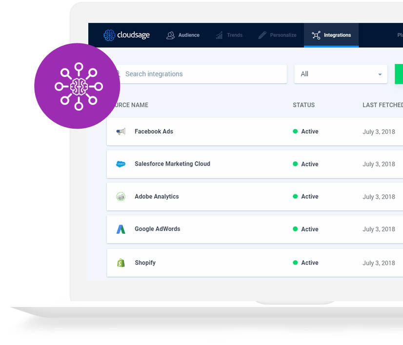 Seamlessly ingest data from disparate sources including, web analytics, online / offline sales, loyalty, CRM, customer support and any other sources that contains valuable customer information